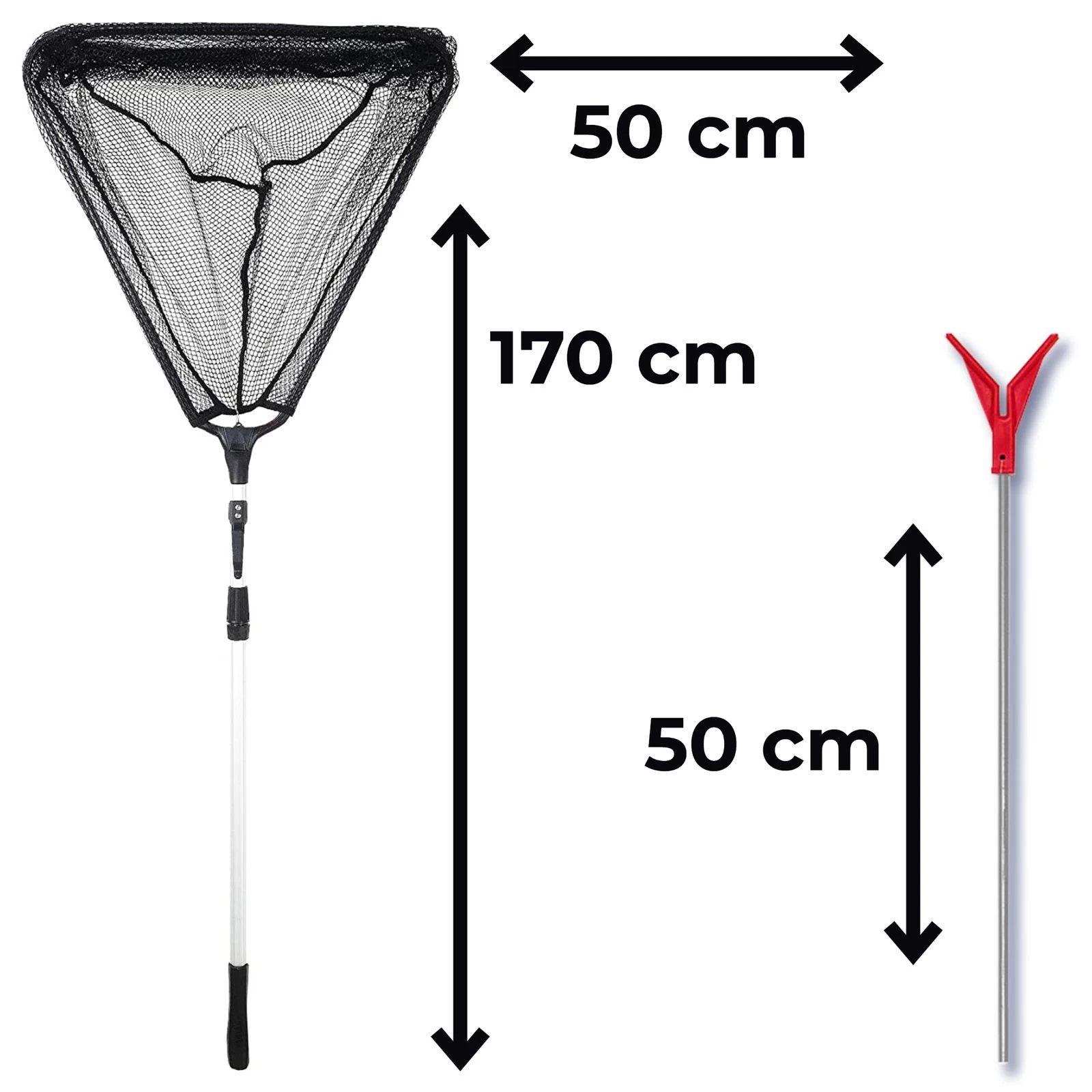 - Fladen teleskopierbarer Unterfangkescher. Stabiler Rahmen und feinmaschiges Netz aus Polyester. Maschenweite 5mm. Netztiefe 50cm. Netzgröße 50x50cm. Gesamtlänge ausgezogen 1,70m. Transportlänge 0,70cm.